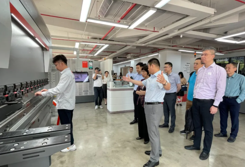 百超应用工程师向市经信委副主任张英女士展示百超设备折弯技术