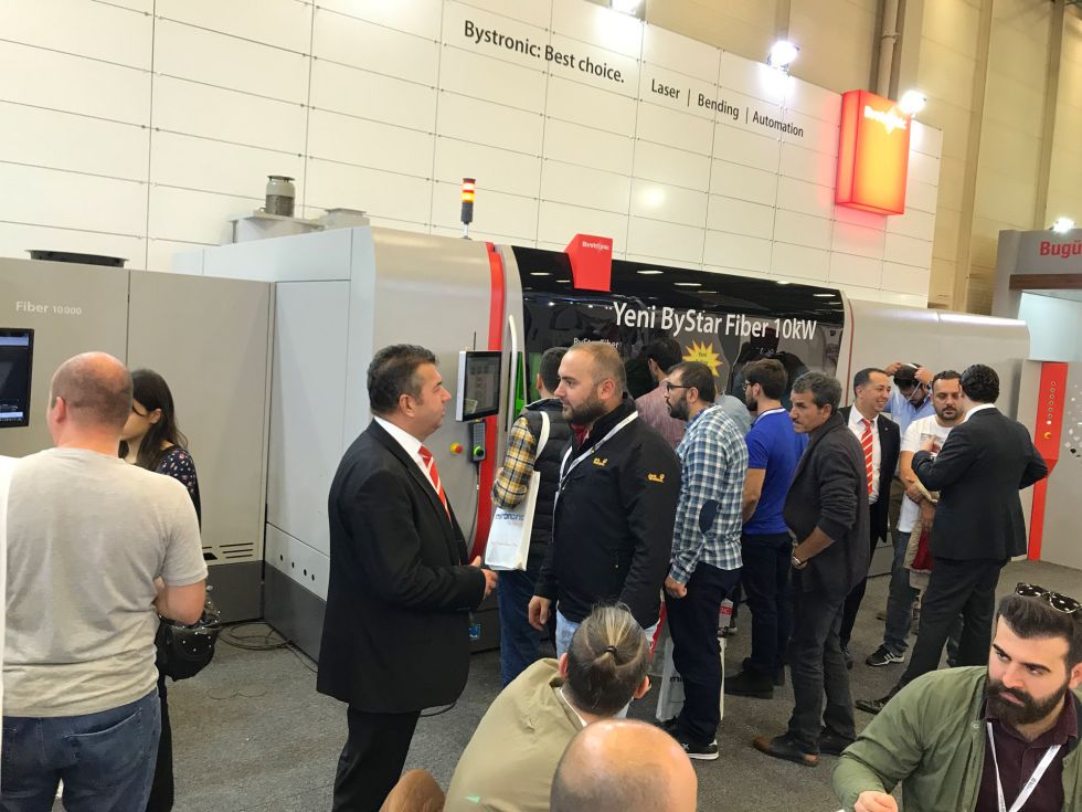 ByStar 10kW Fiber lazer, kesim hızı ve yeni kesme kafası ile ziyaretçileri en çok etkileyen makine olurken; Bystronic fuarın en çok ziyaret edilen standına ev sahipliği yaptı.