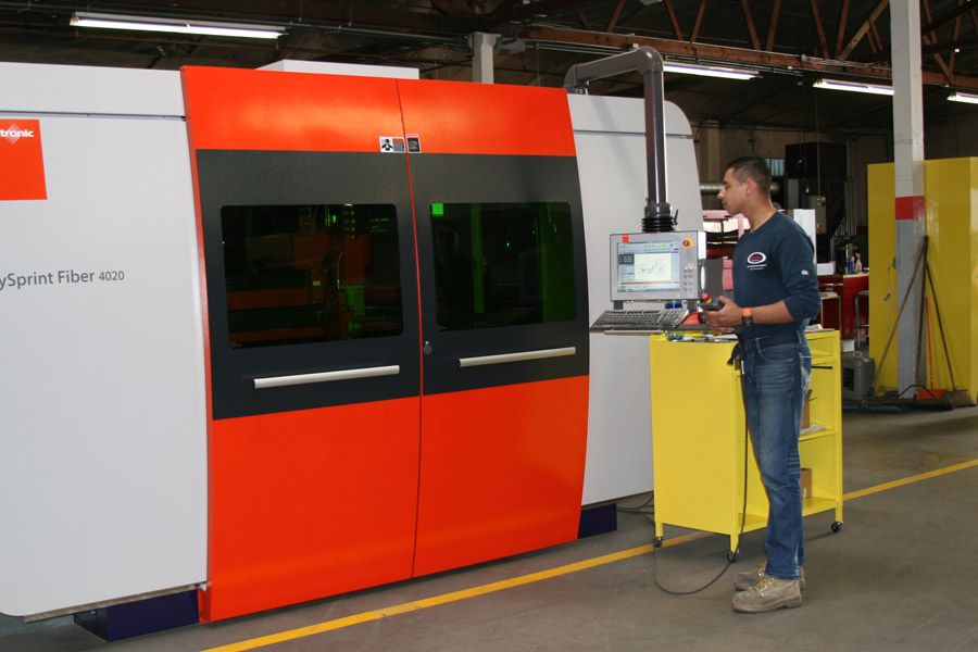 A lot of their work is large. Their fiber laser handles work up to almost 7 ft. by 13 ft. “It’s a big advantage,” says Vicent. “Then we bought a new Bystronic press brake to go with the large-capacity fiber laser.” Staging and trial assembly requires a lot of room, as the photo on page XX shows.